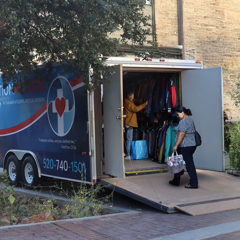 Gospel Rescue Mission’s OPERATION RESCUE Mobile Closet brings high-quality, gently used and new clothing directly into Tucson’s communities—serving individuals and families facing homelessness or hardship with dignity and respect. Each item offered is more than clothing; it’s a reminder that every person is seen, valued, and worthy of care.